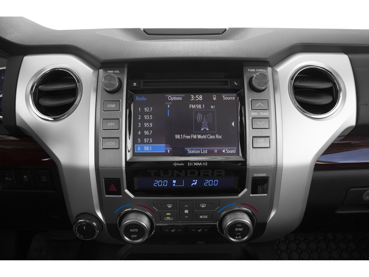 - Radio: Entune AM/FM/HD w/CD Player -inc: navigation system, MP3/WMA playback capability, high-resolution 7" touch-screen display, auxiliary audio jack, USB 2.0 port, iPod connectivity and control, iTunes Tagging, traffic and weather, Bluetooth® hands-free phone capability, phone book access, voice recognition and music streaming, Entune App Suite, includes Bing, iHeartRadio, MovieTickets.com, OpenTable, Pandora, Yelp and Facebook Places; real-time info including traffic, weather, fuel prices, sports and stocks, SIRIUSXM Satellite Radio, 90-day free trial