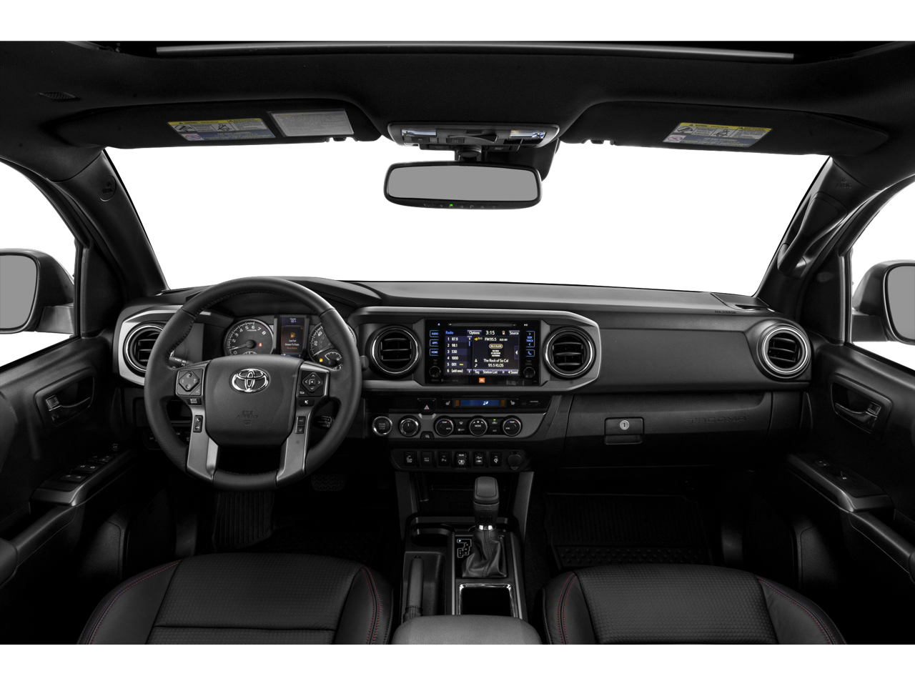 Midnight Black Metallic 2019 Toyota Tacoma TRD Pro V6 4WD 6-Speed Automatic 3.5L V6 PDI DOHC 24V LEV3-ULEV70 278hp Local Trade, 4WD, 120V/400W Deck Mounted AC Power, AM/FM radio: SiriusXM, Auto High-beam Headlights, Auto-Dimming Inside Rear-View Mirror w/Compass, Black Overfenders, Blind Spot Monitor w/Rear Cross Traffic Alert, Dual Zone Automatic Climate Control, Engine Immobilizer, Exterior Parking Camera Rear, Hood Graphics, Lane Change Assist, Power moonroof, Power Sliding Rear Window w/Privacy Glass, Projector-Beam Headlights, Rear Parking Assist Sonar, Rigid Industries LED fog lights, Smart Key w/Push Button Start, TRD Floor Mats, TRD Pro Cat-Back Exhaust, TRD Pro Exterior Badging, TRD Pro Package (TR), TRD Pro Shift Knob, TRD-Tuned Off-Road Suspension (TR), Variable Intermittent Wipers.