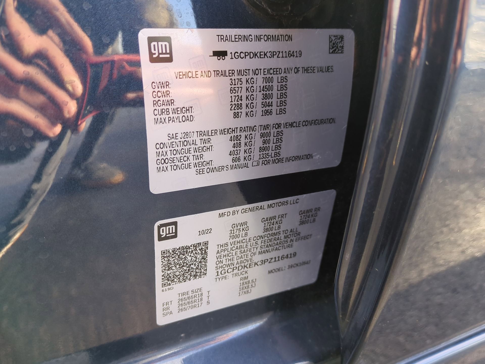 TIRE, SPARE 265/70R17SL ALL-SEASON, BLACKWALL (STD), SEATS, FRONT 40/20/40 SPLIT-BENCH with covered armrest storage and under-seat storage (lockable) (STD), REAR AXLE, 3.42 RATIO, NOT EQUIPPED WITH STEERING COLUMN LOCK, SEE DEALER FOR DETAILS, NOT EQUIPPED WITH FUNCTIONAL CAB AND BED POWER OUTLETS, SEE DEALER FOR DETAILS (Certain vehicles built on or after 9-19-22 may be forced to include (08R) Not Equipped with functional Cab or Bed Power Outlets, which removes the Cab and Bed power outlet functionality. See dealer for details or the window label for the features on a specific vehicle. Vehicles equipped with (08R) Not Equipped with functional Cab or Bed Power Outlets will be eligible for later dealer retrofit to enable functionality. See dealer for details or the window label for the features on a specific vehicle.), NORTHSKY BLUE METALLIC, LT PREFERRED EQUIPMENT GROUP includes standard equipment, LICENSE PLATE KIT, FRONT, JET BLACK, CLOTH SEAT TRIM, ENGINE, 2.7L TURBO HIGH-OUTPUT (310 hp [231 kW] @ 5600 rpm, 430 lb-ft of torque [583 Nm] @ 3000 rpm) (STD).