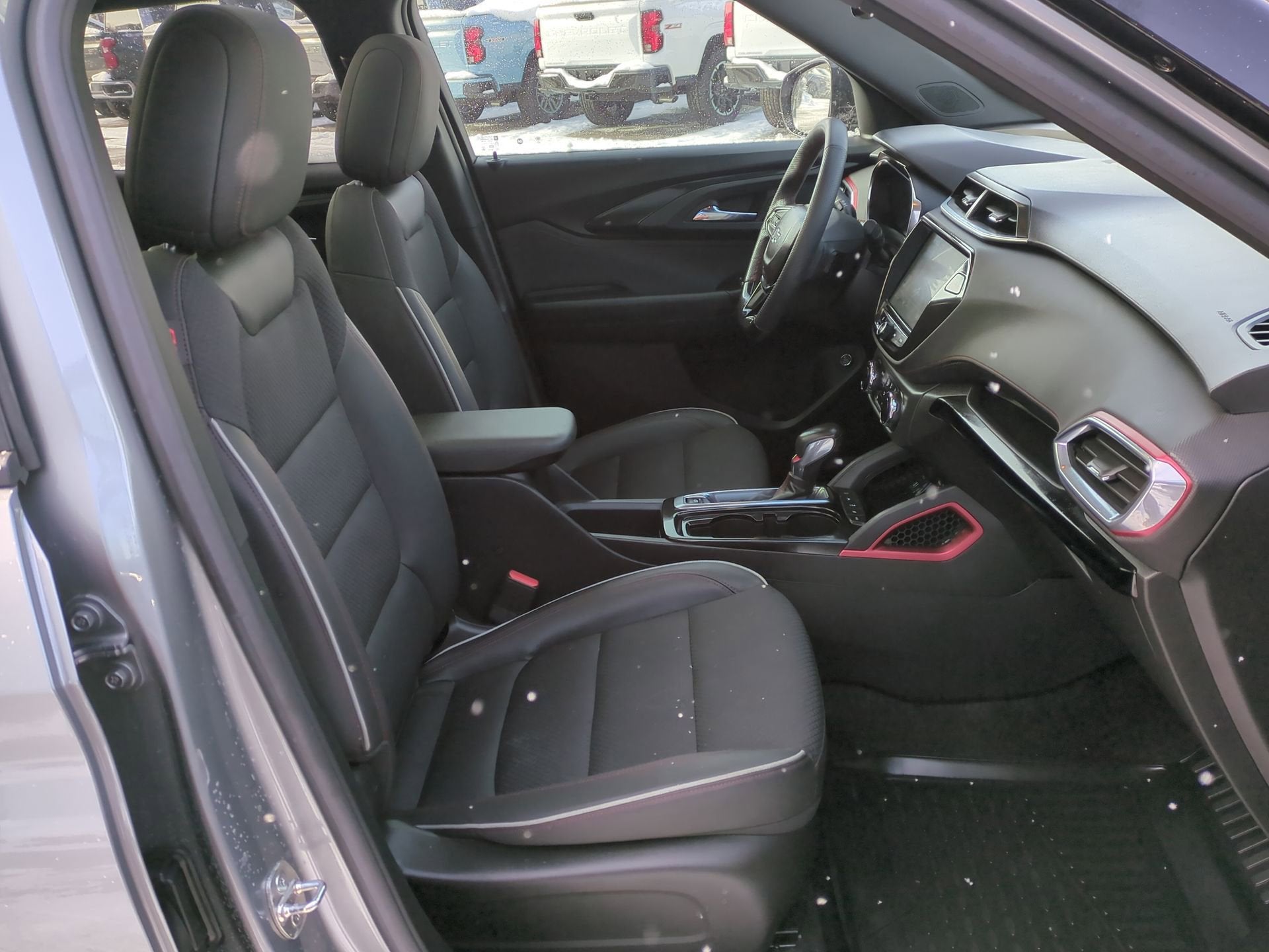 SUN AND LIFTGATE PACKAGE includes (C3U) power, dual-pane, panoramic sunroof and (TC2) power, programmable hands-free liftgate with LED logo projection, NOT EQUIPPED WITH REAR PARK ASSIST see dealer for details. Eligible for later dealer retrofit. (Beginning with start of production through November 28, 2022, when (ZL5) Driver Confidence Package or (SOR) Confidence II Package is ordered, vehicles will be forced to include (00Y) Not Equipped with Rear Park Assist, which removes Rear Park Assist. See the window label for the features on a specific vehicle.), CONVENIENCE PACKAGE includes (C68) automatic climate control air conditioning, (UIJ) 8" diagonal color touchscreen display, (USS) one type-A and one type-C charging only USB ports, (KI6) 120-volt power outlet, (DD8) inside rearview auto-dimming mirror and (DMS) driver and front passenger illuminated vanity mirrors, covered, sliding visors, CONFIDENCE II PACKAGE includes (UD7) Rear Park Assist Beginning with start of production through November 28, 2022, vehicles will be forced to include (00Y) Not Equipped with Rear Park Assist, which removes Rear Park Assist. See dealer for details or the window label for the features on a specific vehicle. Beginning December 26, 2022, certain vehicles will be forced to include (060) Not Equipped with Rear Park Assist, which removes Rear Park Assist. Does not include later dealer retrofit. See dealer for details or the window label for the features on a specific vehicle.), AUDIO SYSTEM, CHEVROLET INFOTAINMENT 3 SYSTEM 7" diagonal color touchscreen, AM/FM stereo. Additional features for compatible phones include: Bluetooth® audio streaming for 2 active devices, voice command pass-through to phone, Apple CarPlay and Android Auto capable. (8" screen when (ZL3) Convenience Package and (ZL5) Driver Confidence Package are ordered.) (STD) , SUNROOF, POWER, DUAL-PANE, PANORAMIC, STERLING GRAY METALLIC, SENSOR, CABIN HUMIDITY, SEATS, FRONT BUCKET (STD), RS PREFERRED EQUIPMENT GROUP Includes Standard Equipment.