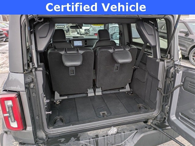 *** This Pre-Owned vehicle is located at Steet-Ponte Ford Lincoln, 5074 Commercial Drive in Yorkville, NY 13495 *** Certified. 2-Door Intelligent Access w/Lock/Unlock, Ambient Footwell Lighting, Auto-Dimming Interior Rear-View Mirror, Connected Navigation, Convertible HardTop, Dr & Pass Illuminated Sliding Visor Vanity Mirrors, Dual-Zone Electronic Automatic Temperature Control, Enhanced Voice Recognition, Equipment Group 222A Mid Package, Front Row Heated Seats, LED Signature Lighting, Navigation system: Connected Navigation, Power Outlet - Back Side of Center Floor Console, Rear Parking Sensors, Remote Start System. Carbonized Gray Metallic 2023 Ford Bronco Big Bend 4WD 10-Speed Automatic 2.3L EcoBoost I-4