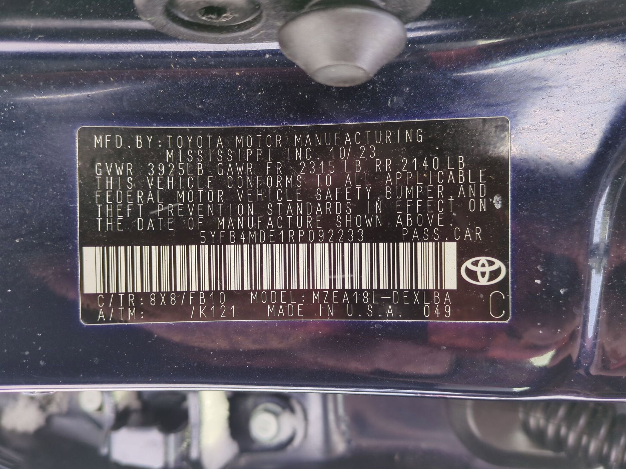 - Vehicle Name: Toyota Corolla