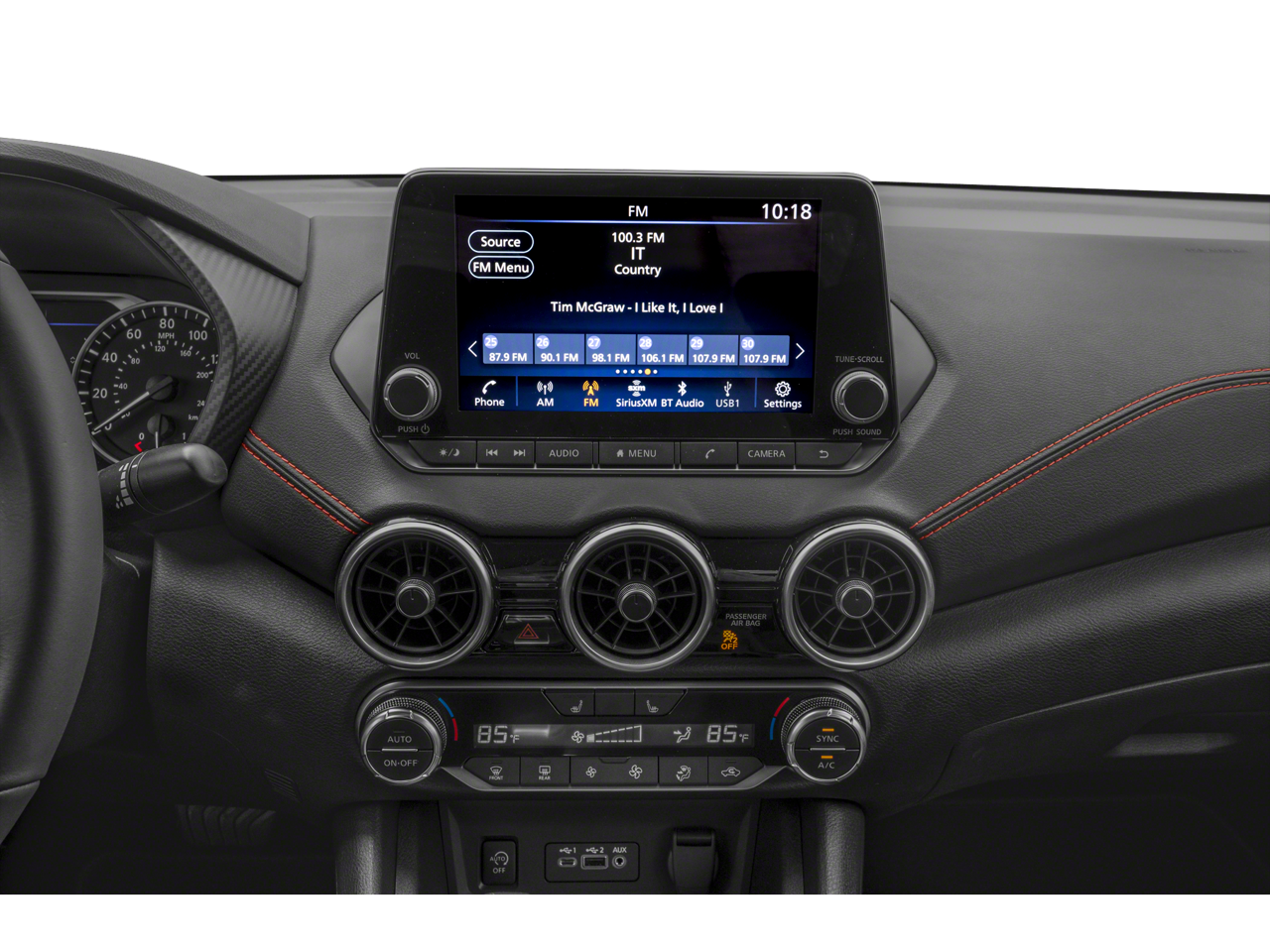 - Radio: AM/FM w/RDS/MP3/Aux-In -inc: 6 speakers plus 2 tweeters in A-pillar, 8" color display w/multi-touch control, streaming audio via Bluetooth®, Bluetooth® hands-free phone system, hands-free text messaging assistant, Siri Eyes Free, Google Assistant voice recognition w/Apple CarPlay and Android Auto, NissanConnect, (1) front USB connection port (type A), (1) additional front USB (type C), (1) charge-only USB (type A) center console and SiriusXM radio w/advanced audio features